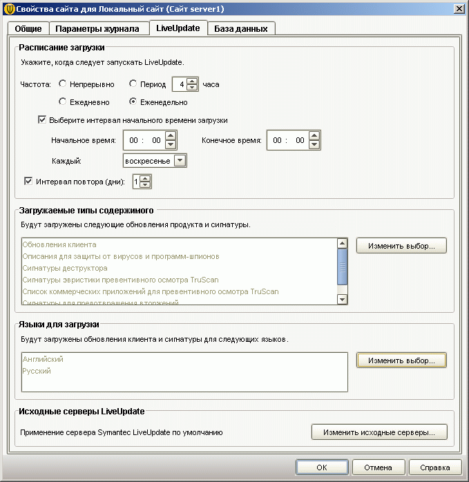 Рисунок 1.17: Endpoint Protection Client – Live Update – Обновление по запросу через сервера Symantec