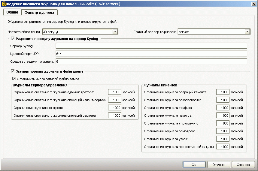 Рисунок 2.28b: Endpoint Protection Manager Console – Admin – Servers – Site Properties – Предоставляет возможность конфигурирования основных настроек глобальной системы управления и мониторингаРисунок 2.28c: Endpoint Protection Manager Console – Admin – Servers – Site Properties – Предоставляет возможность конфигурирования основных настроек глобальной системы управления и мониторингаРисунок 2.28d: Endpoint Protection Manager Console – Admin – Servers – External Logging – Администратору также представлена возможность настройки репликаций системных логов и логов безопасности в режиме реального времени в другие системы