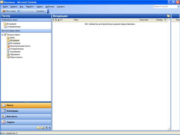 Рисунок 62: Outlook Spam Plug-In – При установке Плагина для Microsoft Outlook возможно управление карантином без веб консоли, письма доставляются в специализированную папку, есть возможность переклассификации писем с автоматической отправкой образцов в Symantec Security Response (возможно использование как совместно с Exchange Spam Folder Agent, так и отдельно)