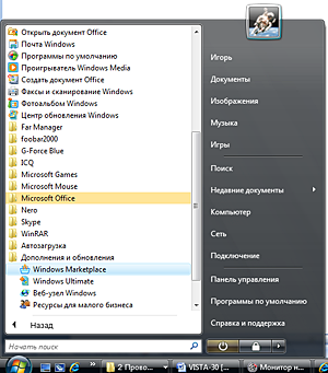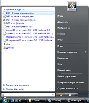 Впрочем, лазить по меню вовсе не обязательно. Можно набрать в нижнем окошке несколько букв из названия программы или команды, система «прошерстит» список и оставит в нем лишь команды, соответствующие запросу (аналогичный механизм реализован в проводнике и в панели управления).