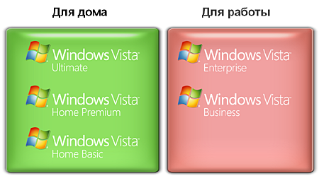 Три редакции предназначены для домашнего использования, две — для деловых применений. Самая старшая система, Ultimate, в отличие от Windows XP относится к классу домашних и предназначена в первую очередь для тех, кто пользуется одним и тем же компьютером и дома, и на работе (это, между прочим, до некоторой степени объясняет и установленную для нее цену, о которой ниже). Vista Home Basic — самая простая, и предназначена преимущественно для тех случаев, когда компьютер недостаточно мощный, чтобы в полной мере реализовать возможности Vista. Основной системой для дома должна стать Vista Home Premium. Она несколько дороже Home Basic, но содержит в себе практически весь функционал. Что касается версий для деловых применений… да ну их, это забота системных администраторов.