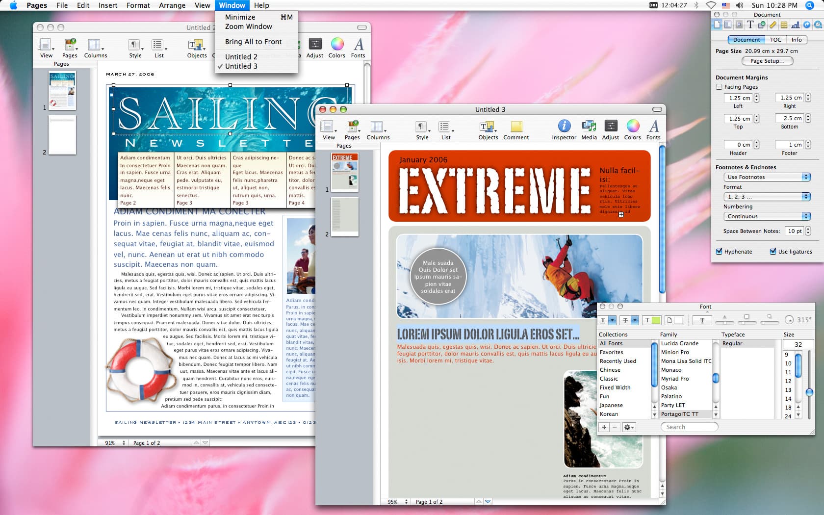 Кардинальное отличие между рассматриваемыми операционными системами заключается в поведении приложений с многодокументным интерфейсом. В Windows рабочее пространство ограничено родительским окном, в Mac OS X родительское окно как таковое отсутствует: вся разница между MDI-приложениями и SDI (с одним окном) заключается в появлении соответствующего пункта меню. Может показаться, что отличие не так велико: да, в Mac OS X пользователь может в любом приложении наблюдать рабочий стол и, естественно, взаимодействовать с ним, но и только. Чтобы ощутить всю разницу, достаточно запустить какую-нибудь MDI-программу с плавающими панелями инструментов (палитрами), например Adobe Photoshop. Что произойдет при разворачивании окна в Windows? Очевидно, будет задействована вся область родительского окна, часть будет перекрыта палитрами. В Mac OS X произойдет зуммирование окна по «свободной» области, палитры не будут закрывать рабочее пространство. Необходимо отметить, что указанное верно не только для Adobe Photoshop (имеющего «маковское» происхождение), аналогичным образом ведут себя, например, программы комплекта Microsoft Office. Такое отличие, на самом деле, является весьма важным, так как влечет за собой разницу в подходах при проектировании интерфейса сложных программ: в Windows стандартом де-факто является использование большого количества инструментальных панелей, пристыковываемых к одной из границ окна, в Mac OS X — обособленных плавающих окон и палитр.