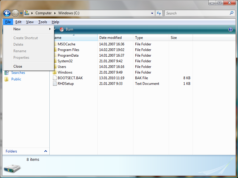 Принципы организации меню также отличаются. Так, в Mac OS X меню является «общим» для всех приложений, его содержание в конкретный момент времени зависит от активной программы, хотя часть команд являются «системными» и не меняются при переключении задач. Также меню несет на себе функциональность системного лотка Windows, отображая часы, индикаторы беспроводной сети и bluetooth, переключатель раскладки клавиатуры и так далее. В Vista, также как и в более ранних версиях, у каждого SDI-приложения или родительского окна MDI-приложения собственное меню (если, конечно, разработчик предусмотрел его наличие). Некоторые приложения Vista, в том числе и Проводник, скрывают свое меню и показывают его только при нажатии на Alt — по всей видимости, это сделано с целью упростить работу с операционной системой для обычных пользователей. Необходимо отметить, что переработанный интерфейс на основе лент в стиле Microsoft Office 2007 в Vista не используется, хотя с определенной точки зрения является более эффективным при выполнении типовых задач в среде операционной системы.