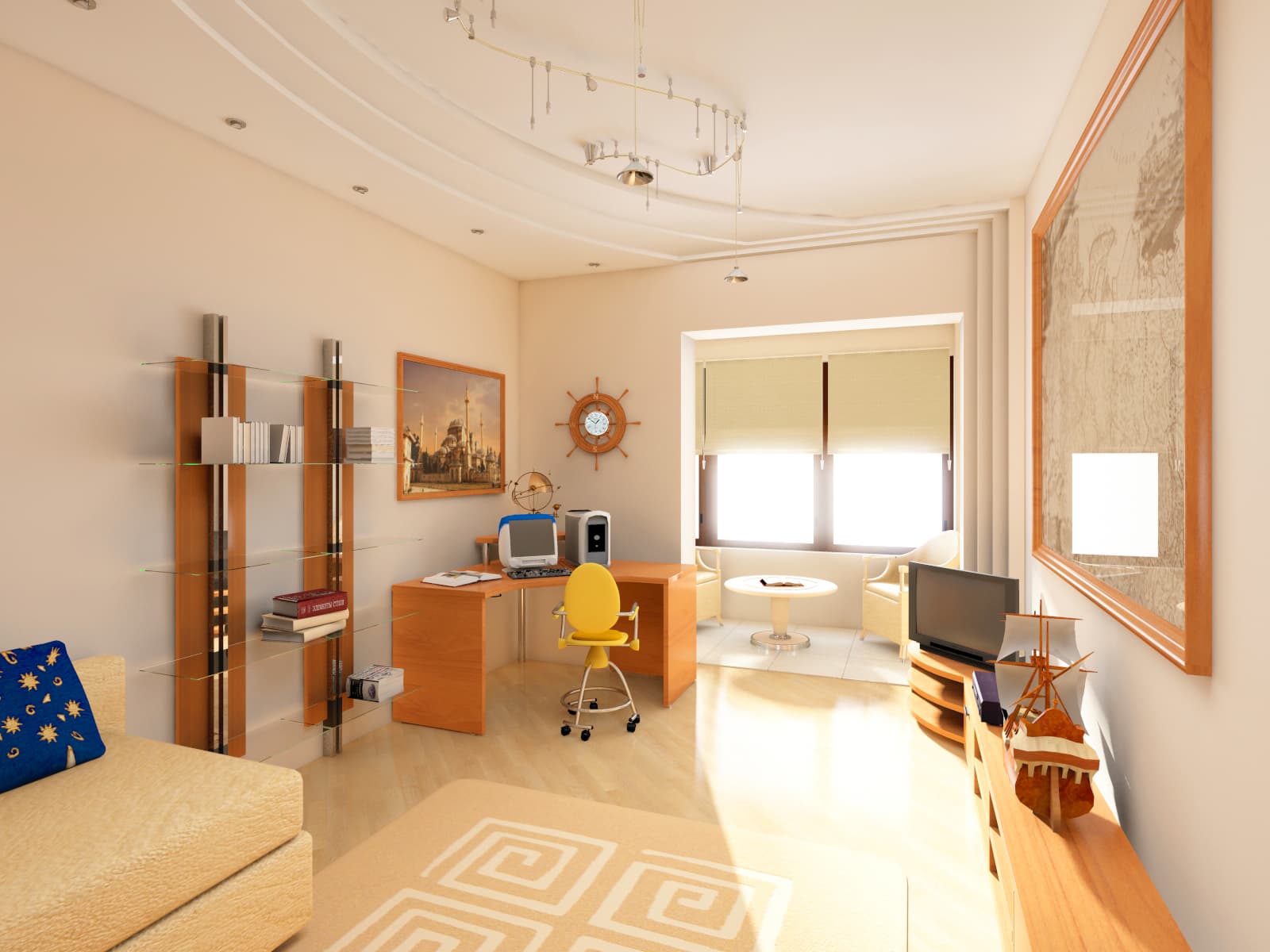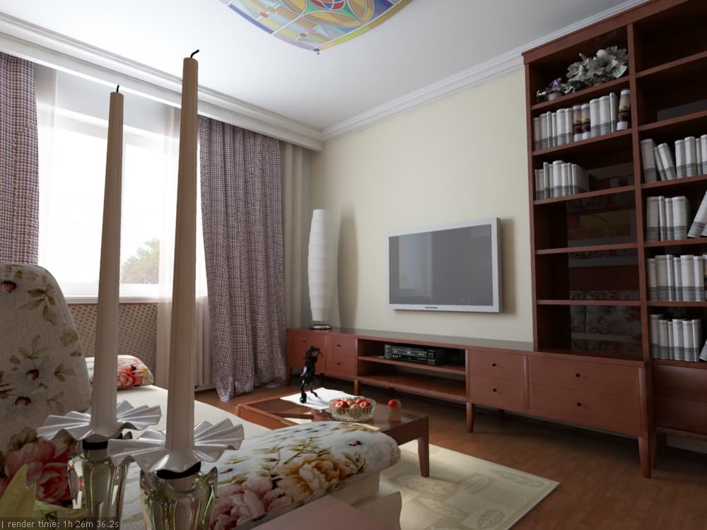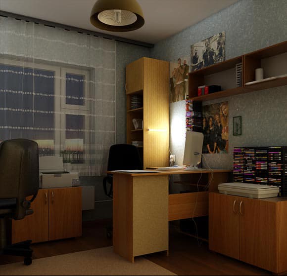 Следует также придерживаться принципа соответствия размеров объектов сцены размерам реальных объектов. Необходимость этого обязательного требования продиктована использованием закона затухания интенсивности освещения с расстоянием в любой современной рендер-программе, рассчитывающей Global Illumination.