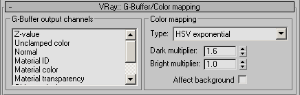 Всего имеется три типа контроля: Linear multiply (линейный), Exponential (экспоненциальный), HSV exponential (экспоненциальный с сохранением насыщенности цвета). Различие между Exponential и HSV exponential состоит в насыщенности тонов после корректировки, при использовании Exponential изображение получается более "сдержанным", блеклым. На последующих этапах, после расчета фотонных карт и irradiance map, возможно, потребуется дополнительно подкорректировать освещение. Это вполне можно выполнить таким же образом и без пересчета карт.