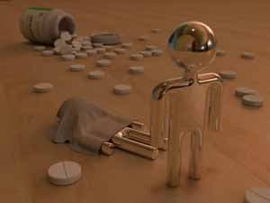 Я не буду подробно останавливаться на создании и настройке caustic-эффектов, поскольку они формируются при помощи фотонных карт, и идеология работы с ними идентична общей методике настройки фотонной карты. Скажу лишь об отличиях, которые необходимо учитывать. Прежде всего, излучение фотонов происходит целенаправленно на объект, каустика от которого рассчитывается. Это позволяет при относительно небольших значениях caustic-subdivs для источников света получать фотонные карты очень высокой плотности и высокого качества. Каустик-фотонные карты рассчитываются и сохраняются отдельно. Это позволяет настраивать их отдельно и подгружать по мере необходимости при финальном рендере. При создании каустики следует также учитывать, что в процессе участвуют только два или несколько (а далеко не все) объекты сцены - генератор каустики и получатель (отражатель) каустики. Соответственно, у объекта-генератора в свойствах нужно включать Generate caustic и, как правило, отключать Receive caustic. У отражателя каустики - наоборот. Генератор должен иметь сильные свойства отражения или преломления и IOR выше единицы, отражатель - наоборот, должен быть чисто диффузным объектом.