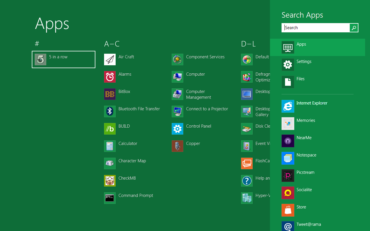 На текущий момент интерфейс Metro еще не завершен. К примеру, Microsoft довольно быстро отреагировала на критику алфавитного списка приложений, найти в котором нужную программу, если вы не помните ее точного названия, довольно проблематично. Поэтому уже в бете должны появиться и другие способы упорядочения, в частности — по группам, примерно как в нынешнем меню Пуск. Однако, как я уже говорил, основные принципы и идеи вряд ли изменятся — на них завязана сама концепция Metro, вокруг них уже сформировалась новая терминология, и т. д.