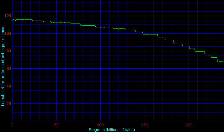 Поэтому по усредненному показателю чтения, записи и копирования файлов (с единичным весом) все RAID 5 примерно вдвое проигрывают по скорости всем RAID 10, как это ни печально, а от размера блока чередования, в конечном итоге, мало что зависит.