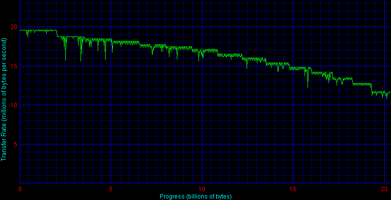 Да, вроде получается парадоксальная ситуация — чем скорость передачи быстрее, тем передача — медленнее. На самом деле, ничего особенно непонятного нет. Дело в том, что для обеспечения относительной независимости от кэша операционной системы в этом тесте используются файлы большой длины (удвоенный объемом оперативной памяти — в данном случае — 256 МБ), так что выигрыш от использования Ultra DMA/66 практически отсутствует. А проигрыш, по видимому, объясняется тем, что встроенный контроллер лучше работает с многоцепочечным (multithread) вводом-выводом. К сожалению, более детального анализа не получается из-за малой информативности данного теста.