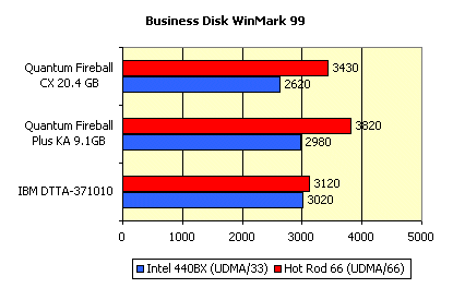 | Business Disk WinMark 99 (tb/sec) | 3020 (30.98%) | 3120 (40.90%) | 2980 (34.20%) | 3820 (44.58%) | 2620 (28.77%) | 3430 (40.02%) |