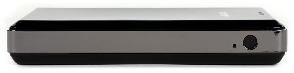 На верхней крышке мы видим логотип производителя, название модели и четыре светодиодных индикатора. Первый показывает уровень заряда встроенной батареи и режим зарядки. Для проверки заряда в выключенном состоянии нужно быстро нажать на кнопку питания. Второй светодиод отображает активность диска, третий активен в режиме беспроводного моста, а четвертый — при беспроводной передаче данных.