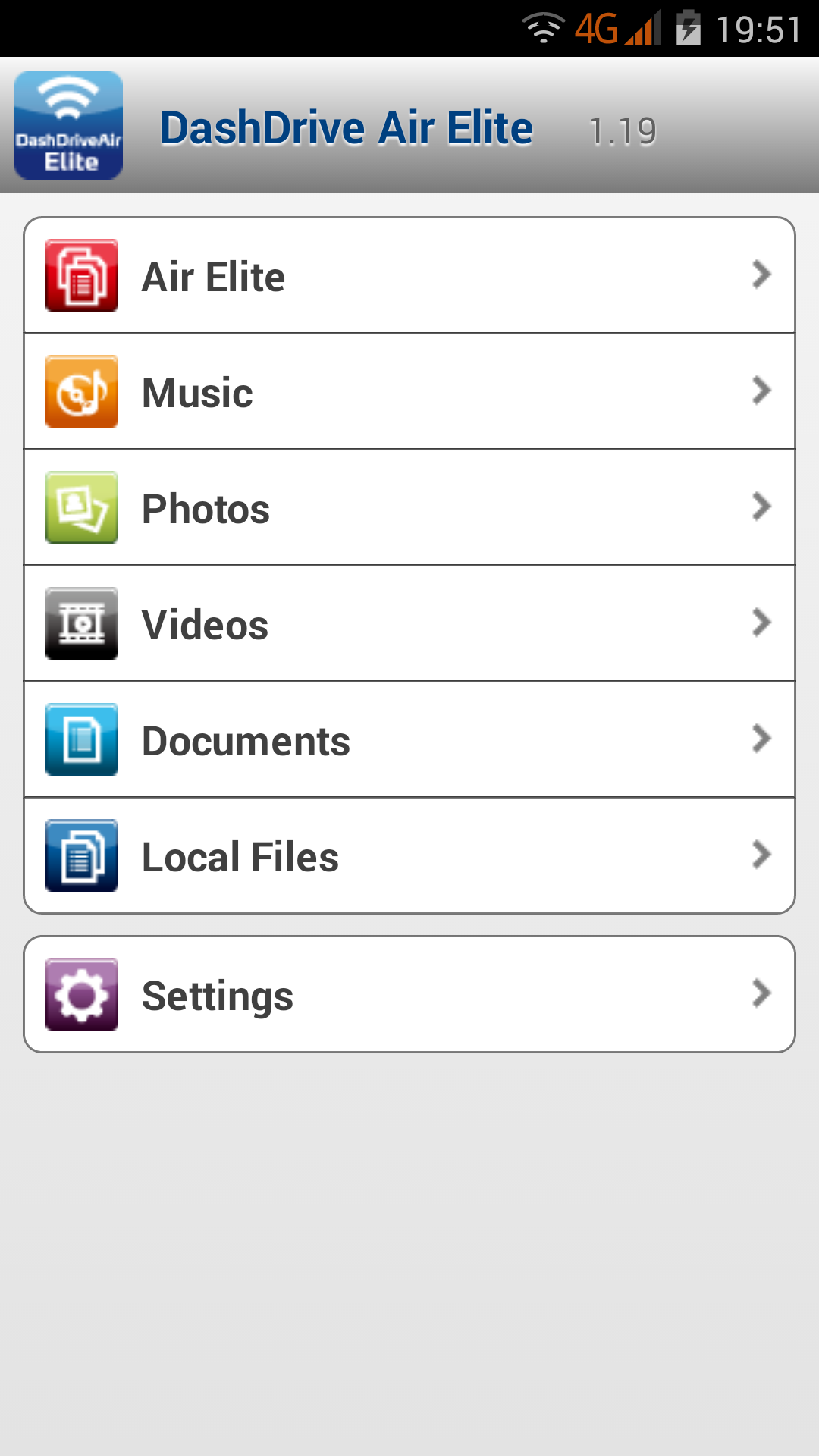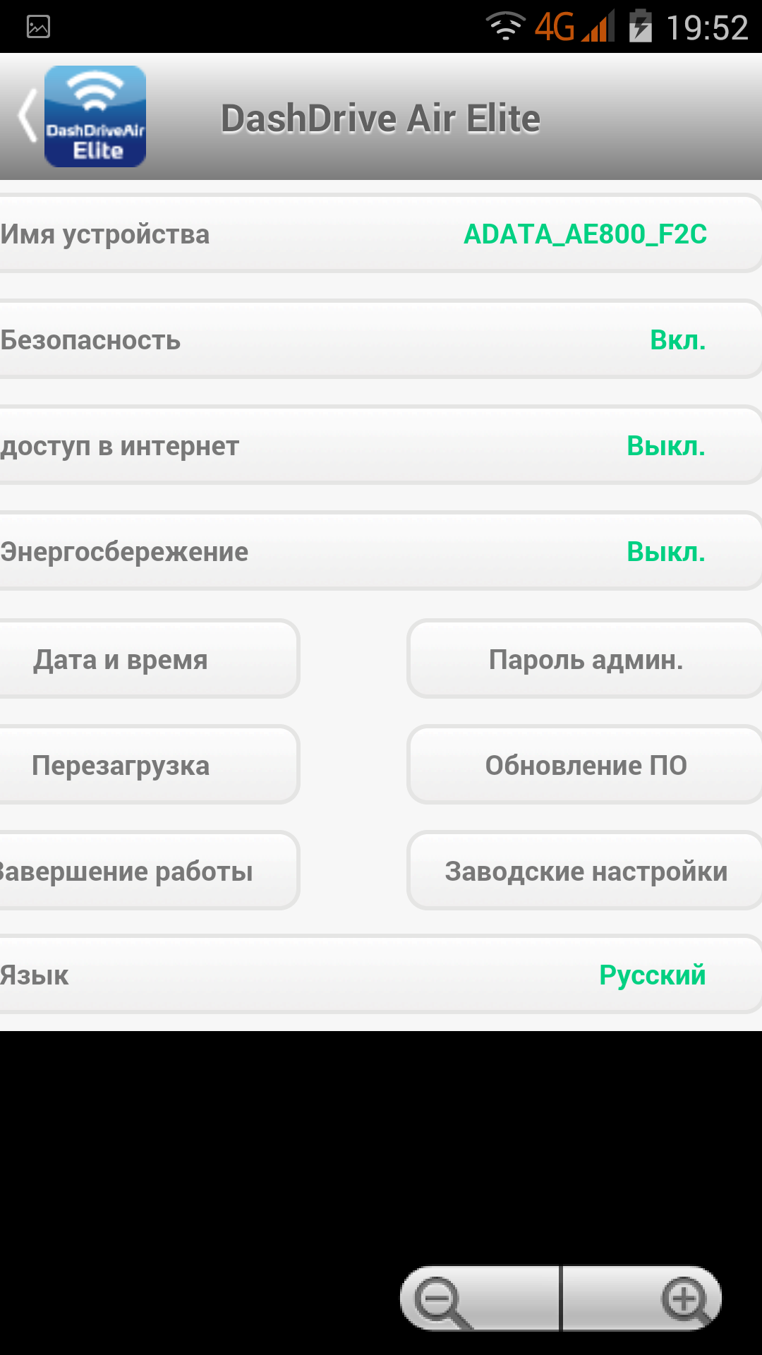 Для смартфонов и планшетов можно использовать стороннее программное обеспечение, поддерживающее описанные выше протоколы, или же установить фирменную программу DashDrive Air Elite, которая есть в версиях для Android и iOS. Она позволяет работать при прямом подключении к беспроводной сети накопителя, так и через роутер. В ней также есть страница настроек, полностью аналогичная описанному выше веб-интерфейсу.