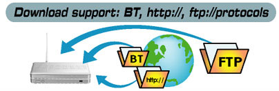 Download Master (мастер загрузки) — весьма полезная функция, позволяющая при помощи WL-700gE загружать файлы из Интернета без использования компьютера. При помощи соответствующей утилиты или Web-интерфейса конфигурирования вы формируете список заданий и WL-700gE закачивает запрошенные файлы. Поддерживаются до 10 одновременных закачек по HTTP/FTP и до 7 BitTorrent. Download Master интегрируется в контекстное меню, так что добавить нужный файл в очередь закачки можно всего в пару кликов мыши.