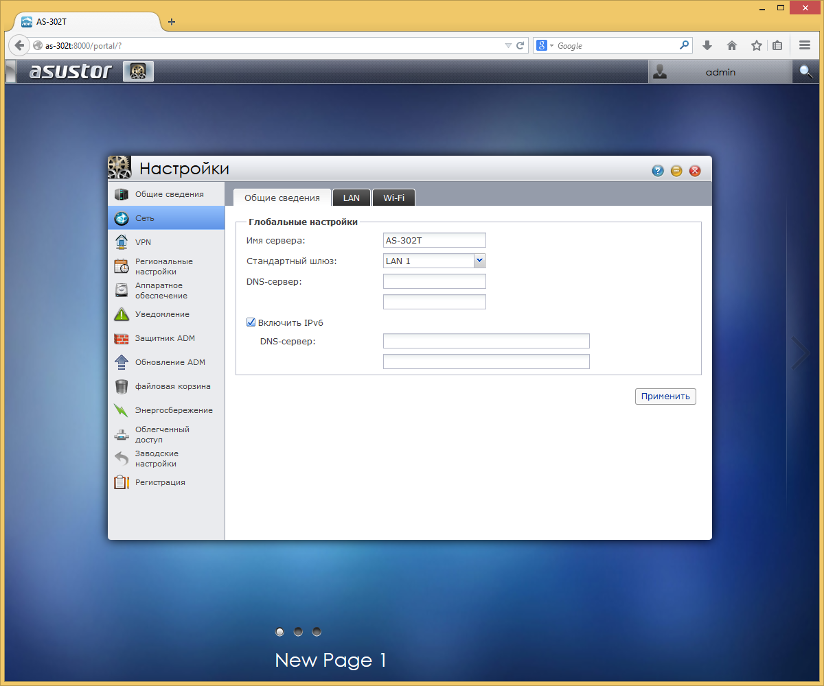 Остальные системные параметры устройства собраны в группу «Настройки». Для высокопроизводительного подключения к сети используется гигабитный порт. Он поддерживает DHCP, протоколы IPv4 и IPv6, Jumbo Frames и VLAN. Дополнительно пользователь может использовать беспроводной USB-адаптер. При этом оба соединения могут быть активны одновременно. В случае работы в составе распределенных сетей, может быть востребован встроенный клиент VPN, поддерживающий протоколы PPTP и OpenVPN. Для повышения уровня защиты в устройстве реализованы межсетевой экран, функция автоматической блокировки при обнаружении попытки подбора пароля и черный список IP-адресов.