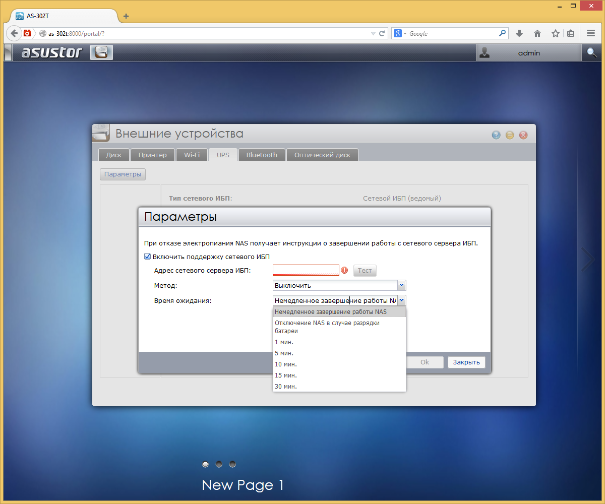 Подключение ИБП позволяет автоматически безопасно выключать накопитель при возникновении перебоев в электропитании. После возобновления питания устройство включается самостоятельно. Поддерживается использование и сетевых ИБП.