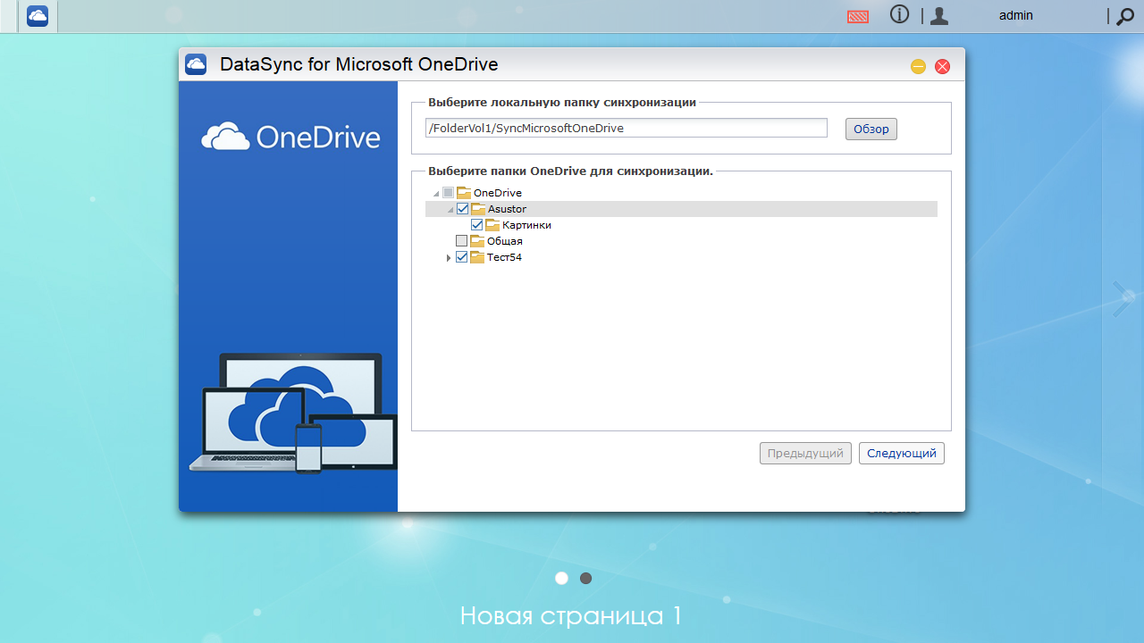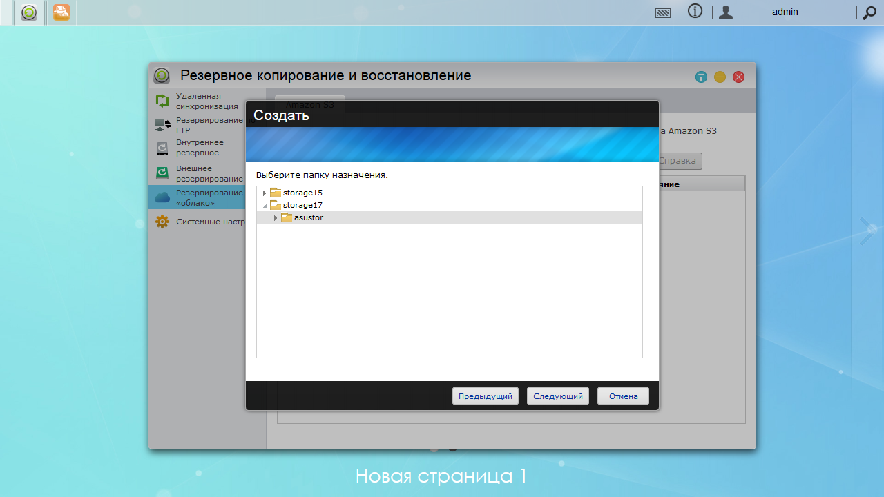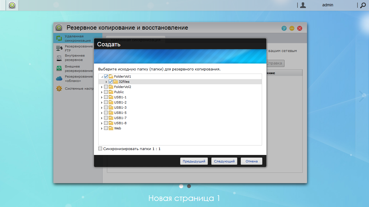 Далее для копирования в облако выбираем исходные папки на сетевом накопителе и место назначения в облачном сервисе.