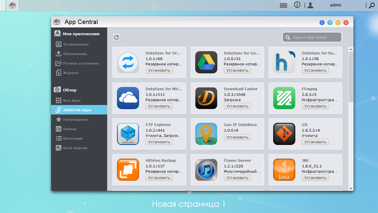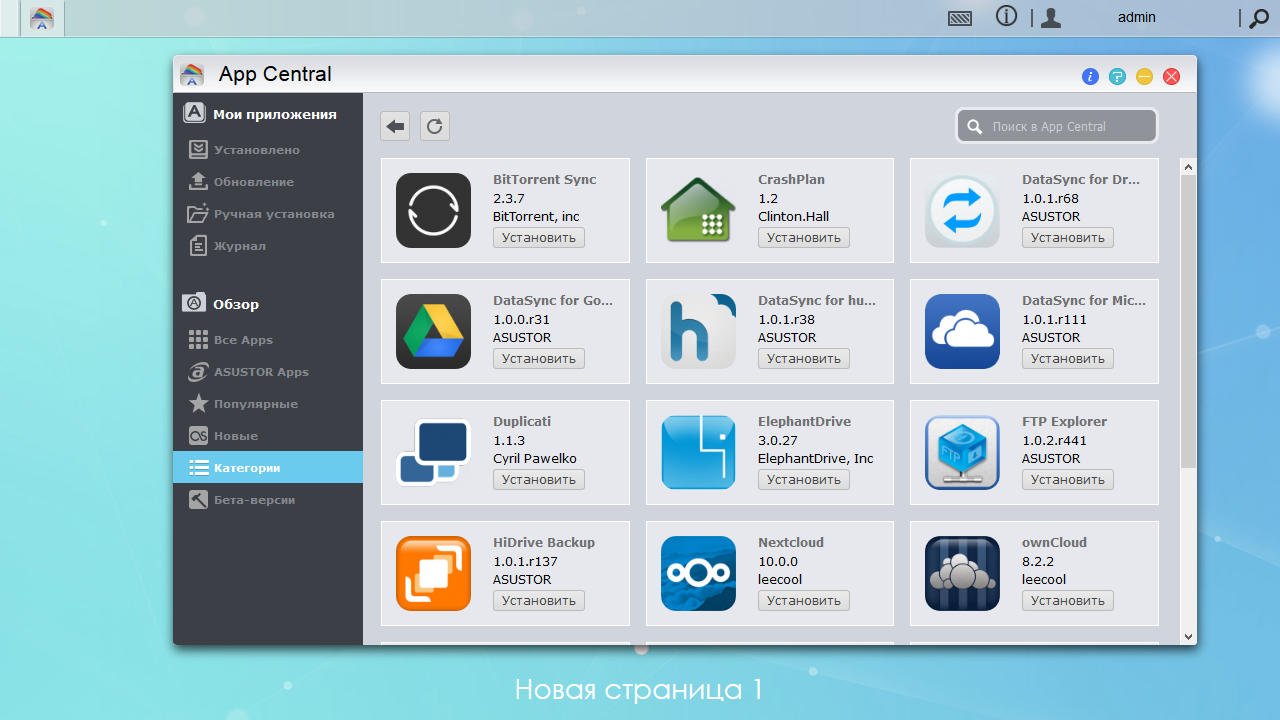 На момент подготовки статьи для Asustor AS1002T в каталоге дополнительных приложений App Central было представлено почти 160 модулей. Из них 32 созданы самой компанией, а остальные — сторонними разработчиками. Начать рассказ стоит, пожалуй, с первых.
