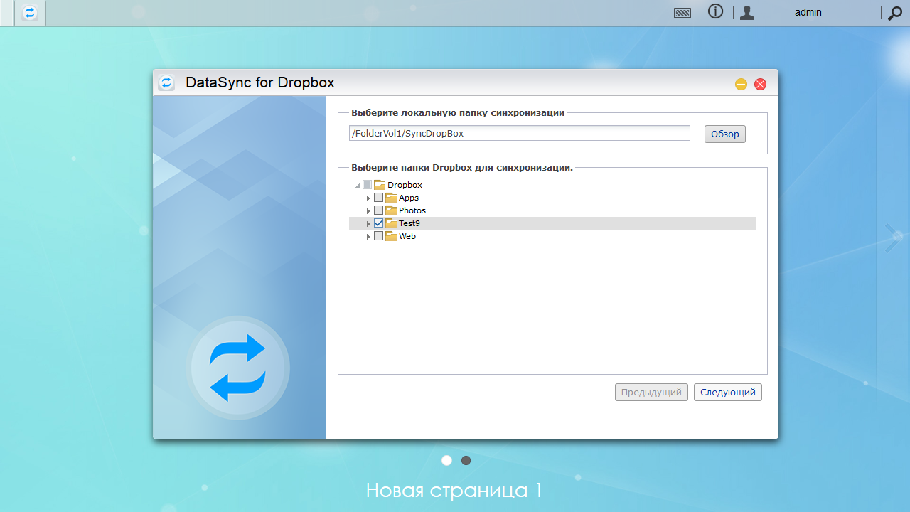 При входе в DropBox потребуется авторизация — разрешение модулю на сетевом накопителе работать с вашими файлами. Далее вы выбираете локальную папку сетевого накопителя и директории в облачном хранилище, которые будут использованы для синхронизации.
