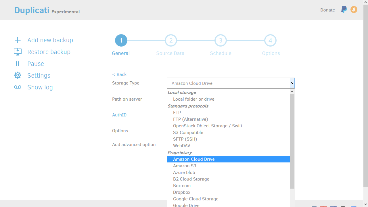 Программа резервного копирования Duplicati интересна тем, что поддерживает большое количество протоколов и сервисов при выборе места назначения (в дополнение к локальным папкам сетевого накопителя). Среди них FTP, WebDAV, Swift, Amazon Cloud Drive, Dropbox, Google Drive и множество других. Управление производится из собственного веб-интерфейса модуля. Предусмотрены выбор папок и файлов для резервного копирования, расписание, шифрование, сжатие, дедупликация, инкрементальный режим, хранение версий и другие опции. Для оценки возможностей программы можно попробовать ее версию для ПК.
