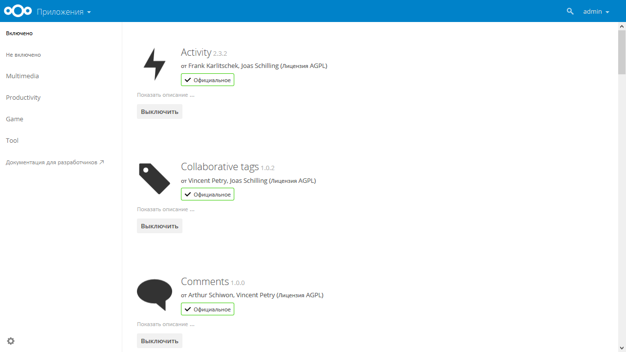 Следующие четыре модуля очень похожи и имеют общие корни. Известный проект ownCloud представлен здесь сразу в трех вариантах — версий 8.2.2, 9.1.0 и ownCloud Enterprise Edition 5.0.9. На его основе относительно недавно был реализован и новый сервис Nextcloud. Все они позволяют создать персональное облако на сетевом накопителе или сервере, подключить к нему мобильные устройства и компьютеры, иметь удаленный доступ через браузер и другие протоколы. Отметим, что клиенты для Android/iOS платные для обычной версии ownCloud, но стоимость скорее символическая.