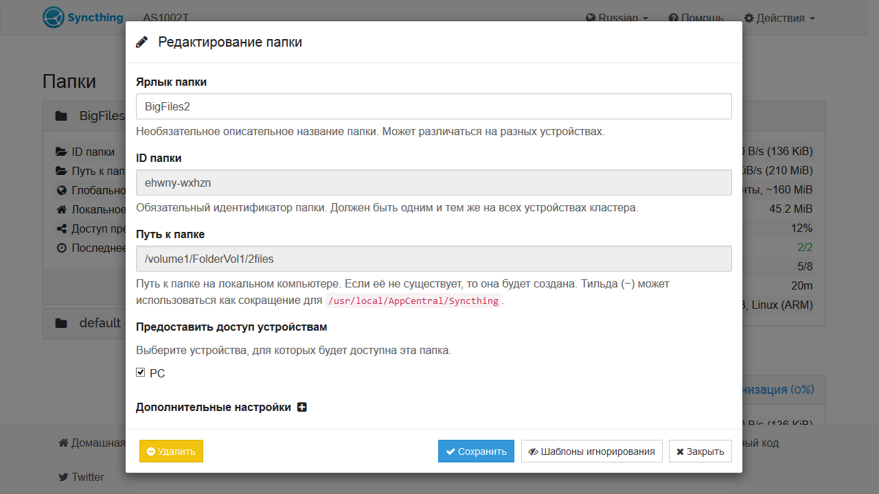 Модуль имеет собственный веб-интерфейс, где вы настраиваете общие ресурсы, режим доступа к ним и другие параметры. Предусмотрено ограничение скоростей, выбор номера порта, его автоматический проброс на роутере и другие опции. Синхронизация проводится в режиме реального времени.