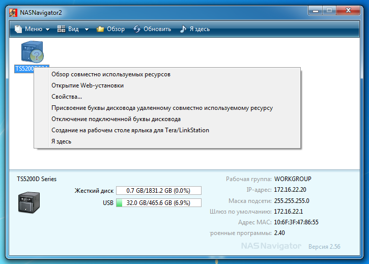 Накопитель поставляется с установленными винчестерами, так что начать работу можно очень быстро. При первом включении производится инициализация дисков и создается том (в данном случае — зеркало) с единственной специальной общей папкой, на которой записаны фирменные утилиты NASNavi2 и iSCSItool. Первая поможет изменить IP-адрес устройства, если в сети не используется DHCP, а также может быть полезна для проверки состояния и подключения общих ресурсов.