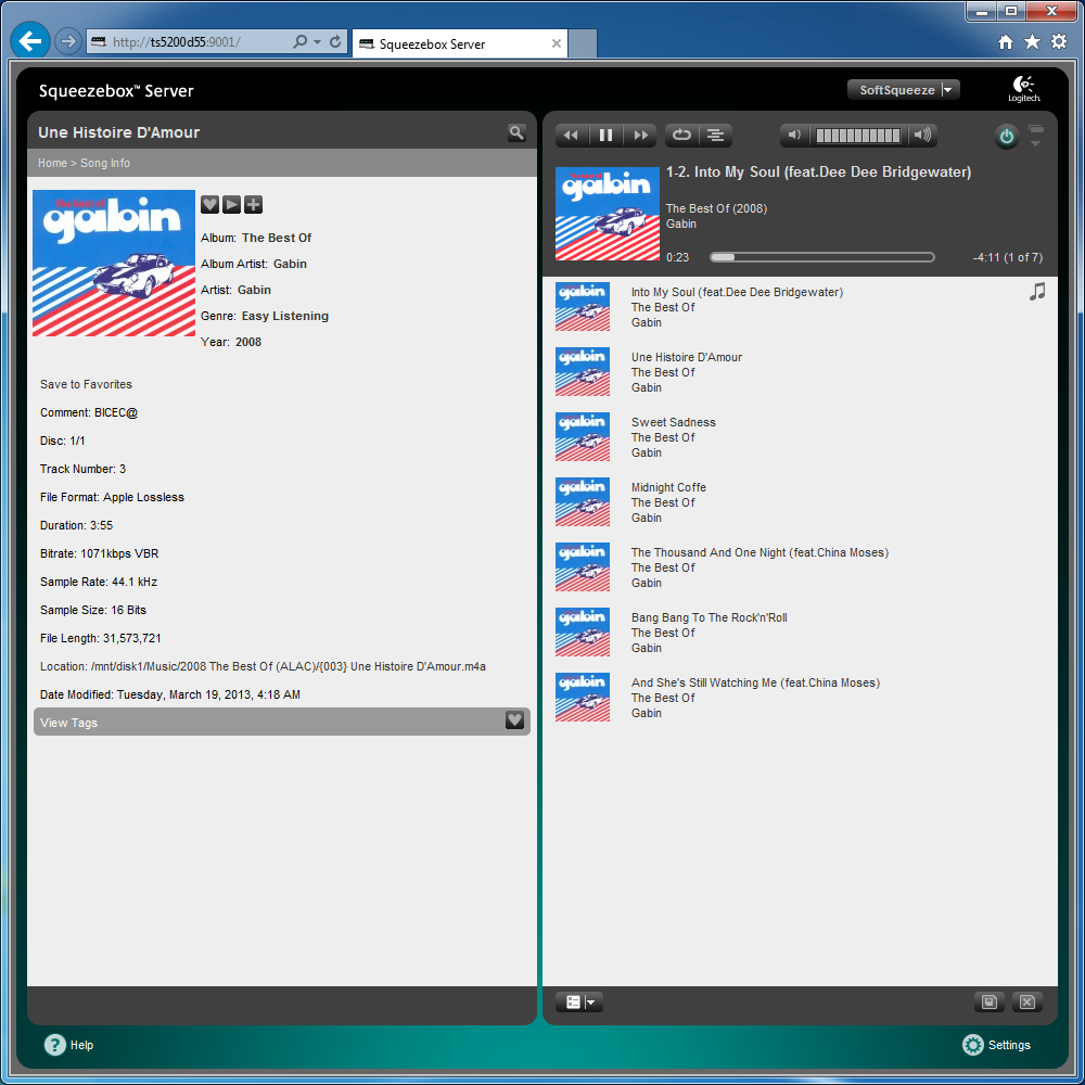 Для Squeezebox есть собственный стандартный web-интерфейс, через который осуществляется тонкая настройка сервера. Данный модуль, прежде всего, интересен широкой поддержкой форматов сжатия аудиозаписей без потерь, включая WavPack, Flac, APE и ALAC.