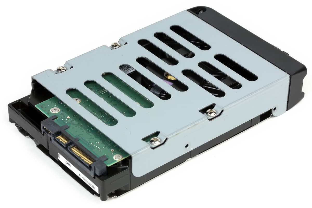 При необходимости пользователь может заменить винчестеры, которые установлены на рамках в отсеках с поддержкой горячей замены. В отличие от других моделей, поддержки 2,5-дюймовых дисков (соответствующих креплений для них) здесь нет.