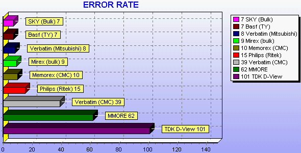Меньшее числовое значение соответствует более высокому показателю качества CD-R диска.