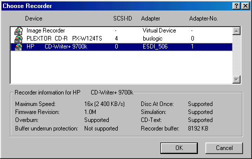 Hewlett-Packard cd-writer 9710i & Yamaha CRW2100E (firmware 1.0N)