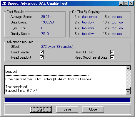 Беря во внимание способность рекордеров TEAC, AOpen и Plextor сообщать сведения о наличии ошибок C2, а также их скоростные характеристики, именно эти устройства можно посоветовать людям, часто работающим с аудиоконтентом. Результаты теста Advanced DAE Test дадут нам более детальную картину возможностей каждого из этих приводов.