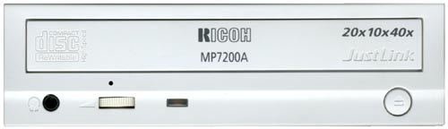 Наверняка вы уже обратили внимание, что из списка поддерживаемых скоростей вычеркнута двукратная скорость записи. Приятного в этом мало, особенно данный факт может разочаровать пользователей, для которых основным назначением рекордера является запись AudioCD. Не секрет, что люди с чувствительным слухом зачастую замечают разницу между дисками, записанными на двукратной и восьмикратной скоростях. Поэтому некоторые меломаны предпочитают записывать аудиоданные на скорости 1х, и тот момент, что у MP7200A минимально доступной скоростью записи является 4х, может скептически настроить таких людей по отношению к новому творению Ricoh.