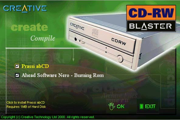 Диск «InstallationCD», содержит только две программы для записи и создания компакт-дисков — Nero Burning Rom версии 4.0.9.0 и Prassi abCD. Если с первой все понятно, то последняя встречается гораздо реже, и предназначена она для записи компакт-дисков в «пакетном» режиме. Функционально она практически не отличается от аналогов произведенных компаниями Adaptec и CeQuadrat, но работает медленнее и с меньшим количеством приводов.