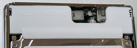 Винчестер НЕ привинчивается к плате или корпусу, а достаточно мягко (но плотно, без люфта) фиксируется в нем: с одной стороны он просто воткнут в разъем EIDE, а с другой его прижимает к плате и между стенок корпуса прокладка из мягкой пластмассы (она так и называется — HDD Fixture, см. фото).