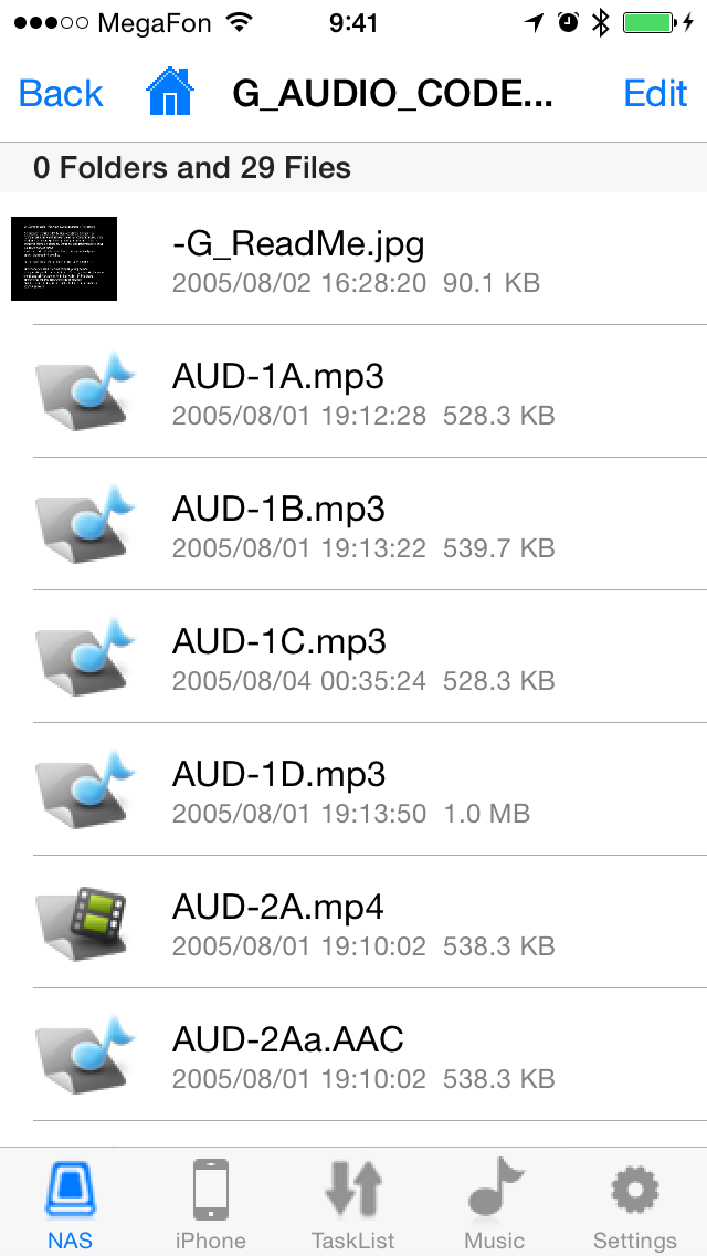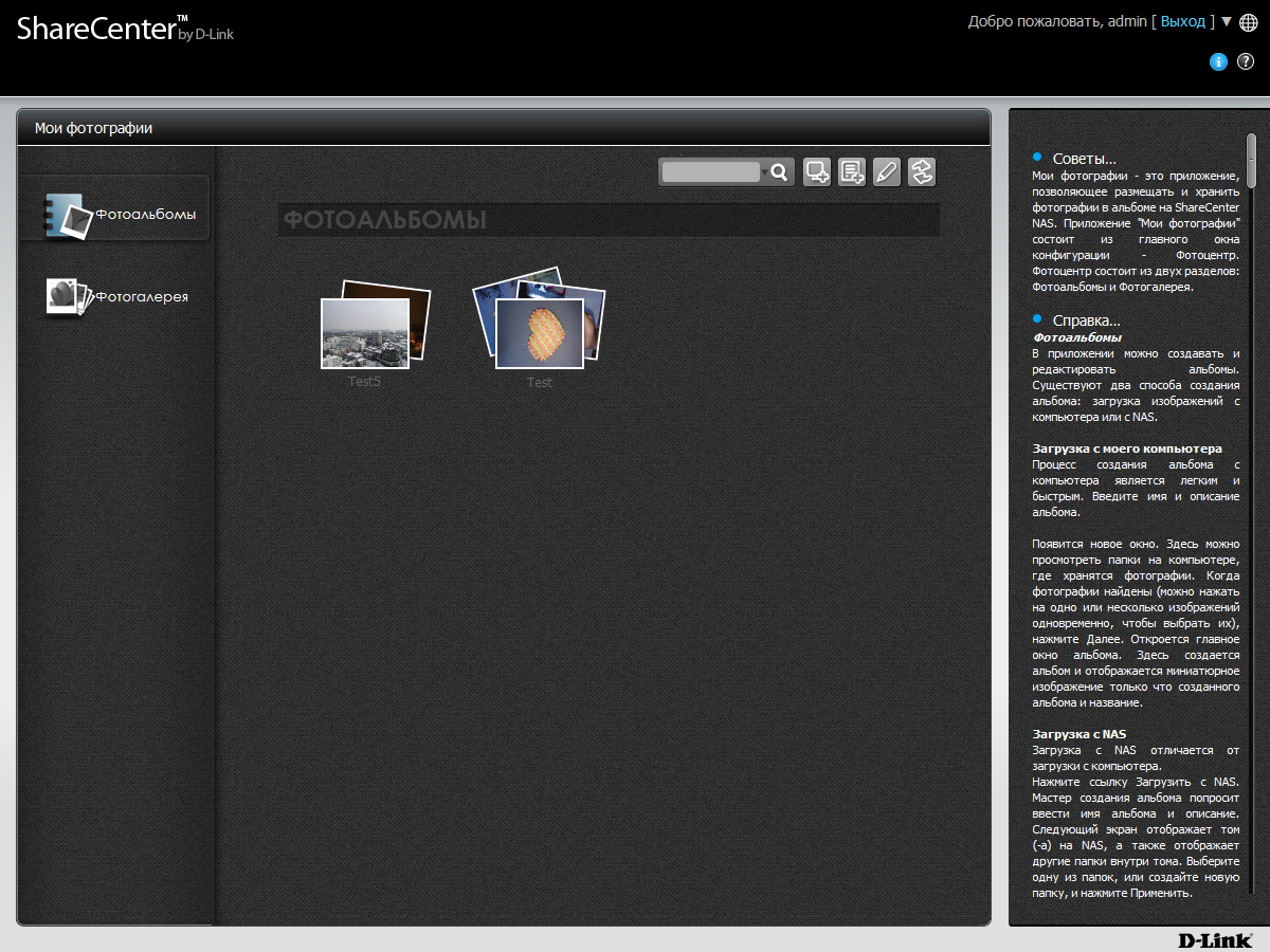 «Мои фотографии» позволяет как просматривать уже записанные на устройство файлы изображений, которые были ранее проиндексированы, так и создавать собственные альбомы и загружать в них фотографии с компьютера или самого сетевого накопителя. Во втором случае поддерживаются режим слайдшоу, некоторые операции редактирования файлов, отправка изображения на устройство AirPlay, публикации в социальных сетях. Не очень удобно то, что данные фотографии сохраняются в скрытой системой папке и недоступны для других сервисов.