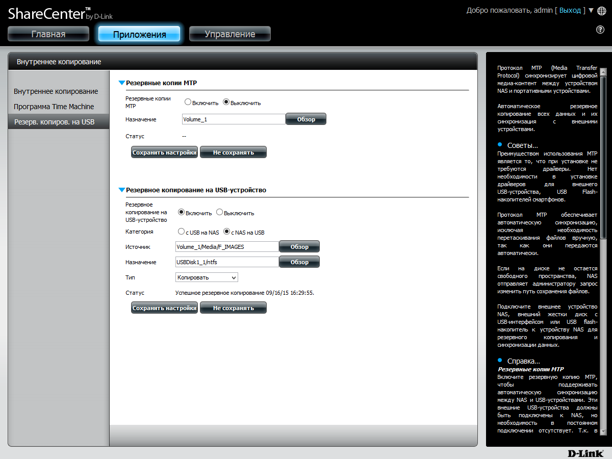 Кроме того, специальные функции есть для USB-устройств. Во-первых, можно включить автоматическое копирование данных при подключении с MTP-накопителей в выбранную папку NAS. Во-вторых, есть функция копирования или синхронизации заданных папок на USB-диске и сетевом накопителе при длительном нажатии кнопки на фронтальной панели устройства. Но и здесь есть некоторые недоработки, в частности нет сообщений в журнале.
