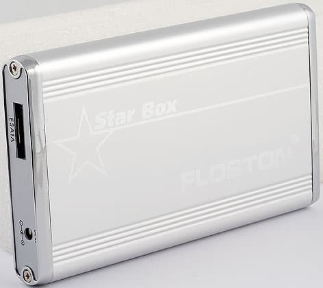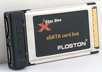Floston Star Box Brilliant KIT интересен тем, что это не просто банальная коробка с интерфейсом eSATA, а именно KIT. В него входит также PCMCIA-адаптер с двумя портами eSATA, что позволяет получить поддержку нового интерфейса и владельцам относительно старых ноутбуков. Для современных требовался бы ExpressCard, но в них и сами по себе порты eSATA часто встречаются. Плюс все необходимые кабели, плюс невысокая цена комплекта. Так что познакомимся с нашим героем более подробно.