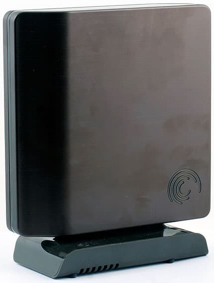 При разработке данной модели конструкторы Seagate, по-видимому, исходили из тех же соображений, что и создатели вертикальных компьютерных корпусов. Класть на устройство что-либо сверху все равно не рекомендуется, а будучи поставленным «на попа» оно займет на столе меньше места, которого вечно не хватает. Соответственно, FreeAgent Pro рассчитан именно на вертикальное расположение, причем, в отличие от многих конкурентов, которые в данном случае кладут «коробку» на длинное ребро, в Seagate решили поставить ее «совсем» вертикально.