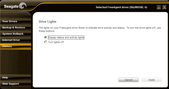 Последняя закладка собирает в себе еще несколько утилит. Очень полезных — проверка диска, настройка режима энергосбережения и управление светодиодным индикатором. К сожалению, есть у данной группы утилит и один очень большой минус — работают они только в том случае, когда накопитель подключен при помощи USB или FireWire. Почему — понятно: eSATA является чистым дисковым интерфейсом, так что встроенная в ВЖД энергонезависимая память (в которой сохраняются настройки) программе просто недоступны. Однако не так это и страшно: для проверки можно использовать системные средства или сторонние утилиты (тем более что штатная слишком проста и выдает мало информации), а все настройки достаточно провести один раз, подключив накопитель через USB, и больше о них не думать.