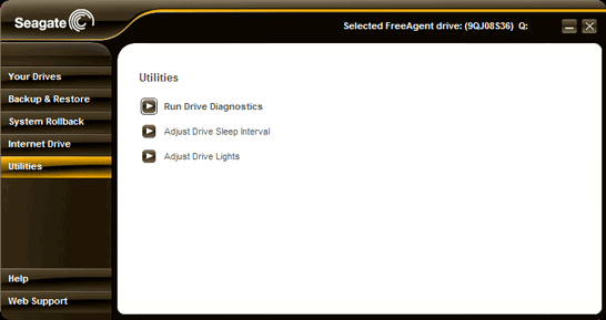 Но мы не будем подробно знакомиться с этими возможностями — лучше продолжим изучение того, что пользователю доступно и без выхода в глобальную сеть или приобретения расширенных версий утилит. Благо, что еще есть, что изучать — кроме написанного Memeo AutoBackup, в состав ПО для накопителя входят достаточно мощные утилиты, написанные самой Seagate. Интерфейс программ, в целом, привычный по всей продукции Seagate/Maxtor (например, ПО для некоторое время назад изученного нами Maxtor OneTouch 4 Mini отличалось лишь деталями), причем до всех важных функций можно быстро добраться при помощи значка в системной области панели задач. Первая же закладка большинству пользователей может показаться избыточной — нужна она лишь при наличии в системе нескольких накопителей серии FreeAgent, дабы получить информацию о каждом из них, либо провести какие-либо индивидуальные настройки.