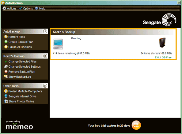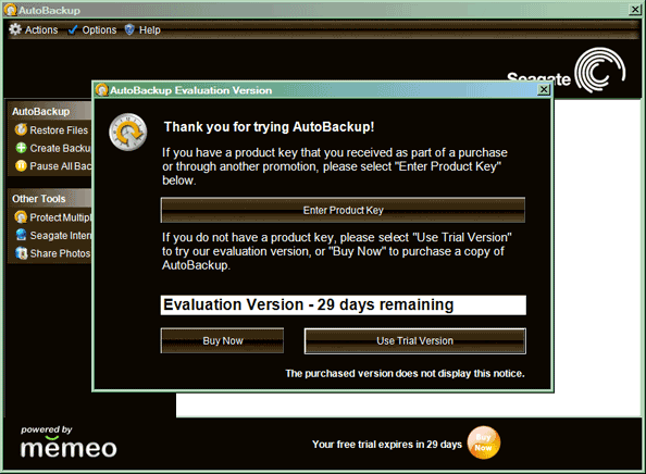 Для флагманского (до последнего времени) внешнего жесткого диска компания Seagate предлагает весьма богатый набор программного обеспечения для Windows (есть ПО и для MacOS, но по причине отсутствия продукции Apple в пределах досягаемости мы его не тестировали), основную часть которого составляет программа AutoBackup от Memeo, стоящая сама по себе около $30. Плюс еще некоторый объем на Internet Drive (о чем ниже), так что стоимость «подарков» еще выше. А недостаток уже традиционный — если вы ненароком удалите весь набор с винчестера, забыв сделать резервную копию, придется писать письмо в компанию, дабы выдали ссылку для скачивания. Это традиционно для всех ВЖД с марками Seagate и Maxtor, но не становится от этого более удобным (Western Digital требует только зарегистрировать свои накопители на сайте, после чего все качается без необходимости писать письма и ждать ответа). Поэтому прежде чем «издеваться» над свежекупленным ВЖД, рекомендуется все скопировать в безопасное место.
