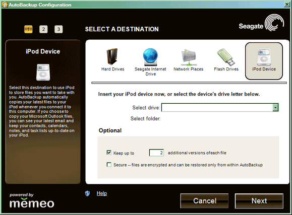 Во-первых, iPod. Все плееры данного семейства работают как стандартные UMS-устройства, так что можно выбрать и первый или четвертый варианты выбора. В большинстве случаев разницы не будет. А если вы активно используете Outlook, причем его файлы в число обрабатываемых AutoBackup входят, то разница будет. Причем в пользу специализированного варианта — тогда программа не только сохранит данные файлы на плеере, но и синхронизирует их с последним, что позволит посмотреть записную книжку или последние электронные письма непосредственно на iPod (очевидно, что те, кого угораздило приобрести iPod shuffle любого поколения, могут безболезненно считать его простым флэшдрайвом).