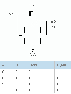 Поскольку память с такой организацией считается первой представительницей семейства Flash, с нее и начнем. Схема логического элемента, собственно давшего ей название (NOR — Not OR — в булевой математике обозначает отрицание «ИЛИ»), приведена на рисунке. | ![]() |