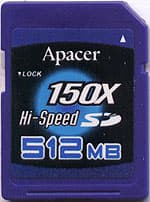 Вот в этой карте уже сочетается и емкость от 0.5 до 2 Гбайт, и высокая скорость работы, ради которой не жалко и огород с SD 1.1 городить. Скорость чтения официально составляет 22,5 Мбайт/с, записи — 15 Мбайт/с, т. е. в полтора раза ниже. А вот каким соотношение будет на практике — стоит проверить. Дело в том, что 150х в случае SD 1.1 меня несколько смущают. Как выяснилось, для предыдущей версии стандарта максимумом были 66х, в новой всего лишь вдвое повысили частоту синхронизации, значит упереться мы должны в 133х. Впрочем, разница в 10% не так уж и велика, но интересно — зачем декларировать то, что вряд ли будет достигнуто. А может и будет — во всяком случае у карты, которая взята для сравнения маркировка как раз 133х. Вот и проверим — отличаются ли носители друг от друга с точки зрения тестов.