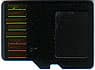 Что касается microSD, то тут особо ничего интересного нет. Типичные «рабочие лошадки», емкостью 1 и 2 гигабайта (вторая к нам и попала в руки). На данный момент именно такие весьма популярны, благо подходят к любому смартфону/коммуникатору (в отличие от microSDHC), а стоят очень дешево. В комплекте поставки присутствует переходник на полноразмерный слот SD, но, к сожалению, только на него — предлагаемого многими производителями переходника на miniSD нет. Это тем более странно, что в ассортименте QUMO miniSD-карт «в чистом виде» нет, а вот плееры с таким слотом расширения как раз есть — логично было бы дать возможность покупателям последних расширять память «не изменяя» торговой марке ;)