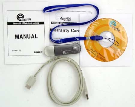 Комплект поставки похож на присутствующий в случае «старшего брата»: накопитель, USB-удлинитель (нужен лишь для удобства — воткнуть устройство куда угодно можно легко), колечко с карабинчиком и шнурок для ношения флэшдрайва на шее, инструкция, гарантийная карточка и CD с софтом и документацией. Правда, CD теперь тоже стал компактнее — 3.5″. Да и удлинитель красивее — серебристый металлик, а не блекло-серый (не удивлюсь, если окажется, что он экранирован и полностью совместим, таким образом, с USB 2.0 — приятный подарок от фирмы будет), и шнурок-ошейник такой же. Я, кстати, долго думал, что он мне напоминает, потом обнаружил на нем надпись «IRIVER» :) Все встало на свои места — точно такой же прилагается к плеерам iRiver iFP. Там он, правда, нужен как корове седло (плееры имеют достаточно большую массу), а вот флэшдрайв на нем носить удобно.