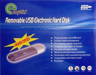 EasyDisk всегда базировался на контроллере SSS: недорогом, но обеспечивающем невысокую скорость работы и большое время доступа. Это было не очень критично для младших моделей накопителя, однако сильно не нравилось покупателям старших. Именно поэтому компания решила увеличить скорость своих устройств: на рынок вышли Mini EasyDisk и EasyDisk Higher Speed. О первом устройстве мы поговорим ниже, а второе представляет собой обычный EasyDisk емкостью 512 Мбайт или 1 Гбайт (вообще говоря, согласно инструкции существуют и модели меньшего объема, однако сейчас поставляются только два старших варианта), но на контроллере OTi, а не SSS. Как мы уже установили в предыдущих частях эти контроллеры заметно быстрее. Фирма указала очень оптимистичные цифры в спецификации — 950 Кбайт/с запись и 1100 Кбайт/с чтение. Разумеется, рассчитывать на это не стоит — 12 Мбит/с USB 1.1 на практике могло бы обеспечить лишь 1 Мбайт/с (шина-то последовательная, так что где-то треть ее пропускной способности уйдет на накладные расходы), а на деле не самый удачный протокол работы способен снизить эту цифру еще процентов на 15 (в лучшем случае и если производитель сильно постарается, то на пять). Ну а про реальную скорость работы мы поговорим ниже.