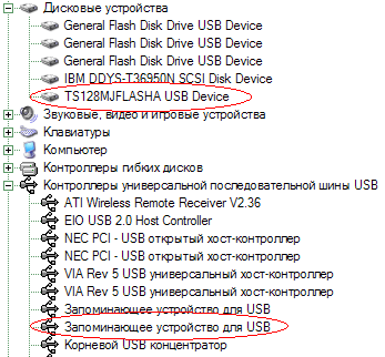 В списке устройств об Apacer ни слова — просто абстрактный диск USB 2.0.