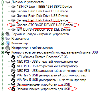 Подключение устройства к компьютеру, работающему с более современной версией Windows вообще осуществляется элементарно — мы сразу же получаем абстрактное устройство хранения информации с интерфейсом USB в списке.