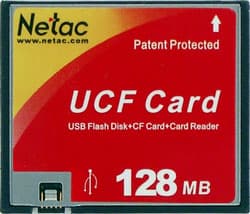 Итак, что же такое UCF? Это всего лишь аббревиатура от USB-CF. Компания Netac взяла обычную карту Compact Flash и поместила в нее USB-контроллер и мини-USB-разъем (на стороне, противоположной контактам CF).